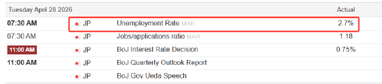 今日早间7点30分,日本公布了三月份的失业率数据,最新值2.6%,相比前值下降了0.1个百分点。日本的劳动力市场一直保持充分就业的状态,所以该数据对美元兑日元短线行情的冲击力不大。数据公布之后的一分钟K线,开盘价收盘价最高价最低价分别为:159.41、159.42、159.42、159.41,一分钟内的最大波动幅度也只有一个点,开盘价和收盘价也仅相差一个点,可以认为行情没有出现任何意外变化。
